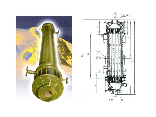 由鋼殼與石墨爐蓋、合成筒和爐底組成,與鋼合成爐相比有以下特點:1、使用壽命長(一般在10年以上);2、產品酸純度高3、可簡化生產流程;4、生產能力大(同體積相比)5、勞動條件、控制和管理方便技術特性:許用壓力:<0.12MPa出口溫度:<350℃冷卻水:常溫、常壓